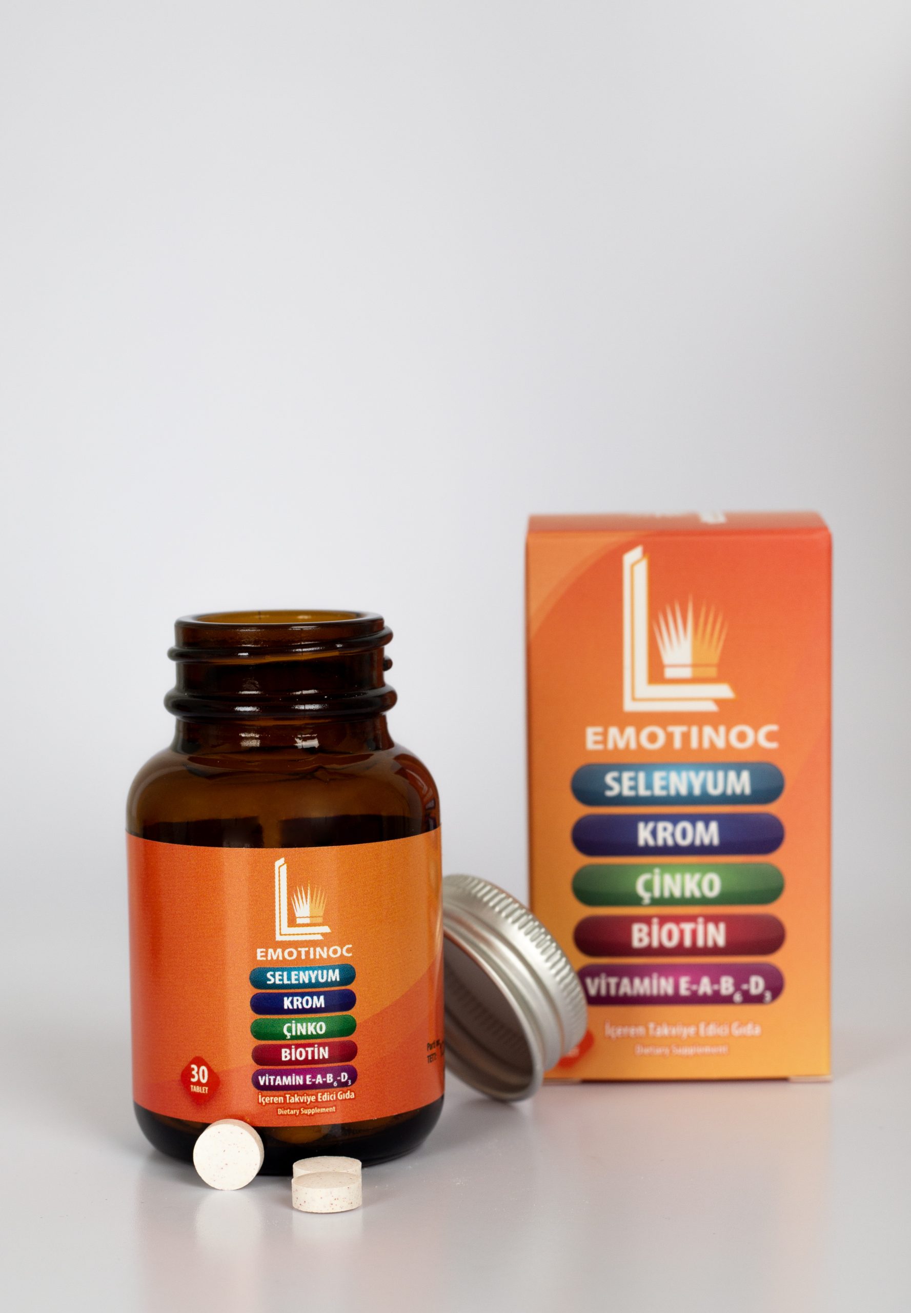 Emotinoc Selenyum,Krom , Çinko, Biotin A,D,B6 ve E Vitamini